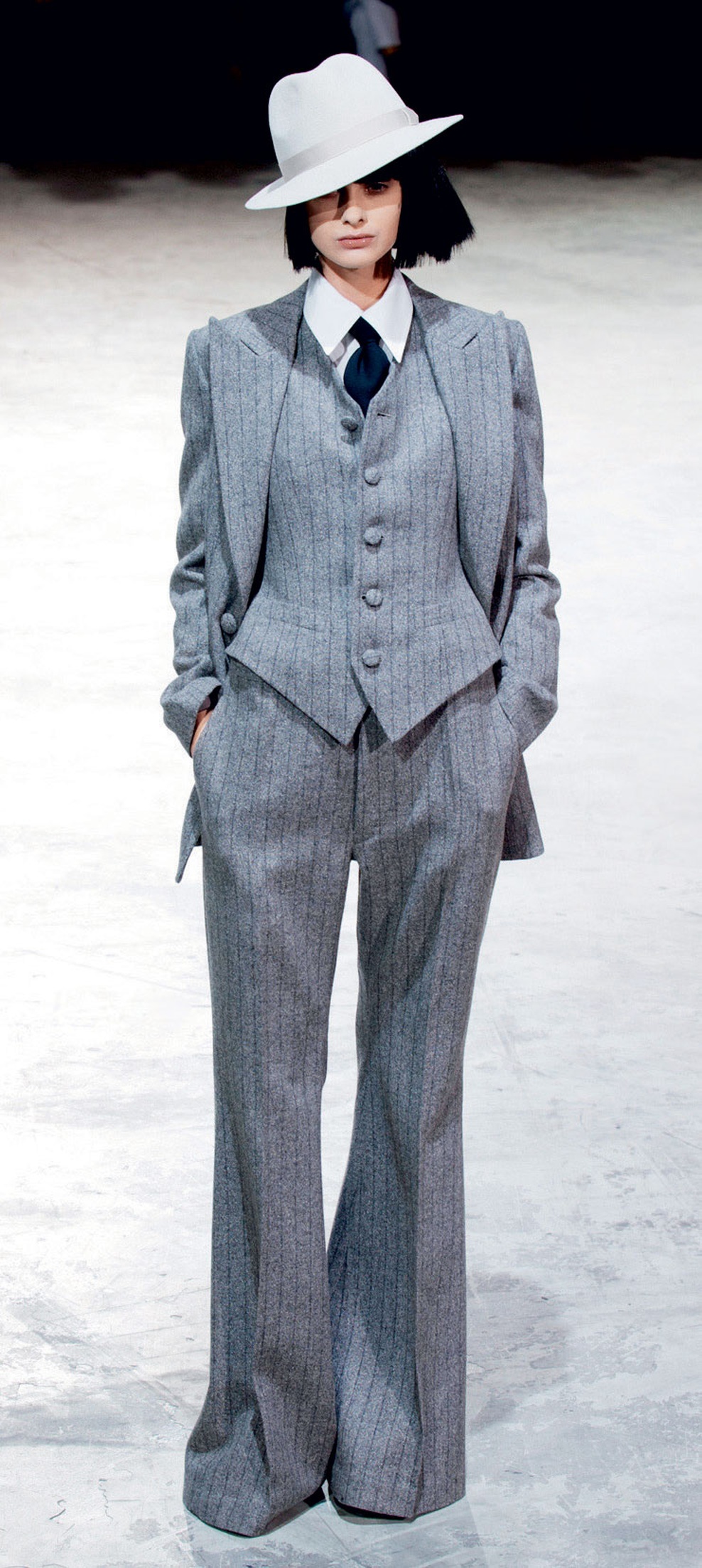 Kostim v družbi bele T-majice je kot nalašč za prve delovne dni v septembru.