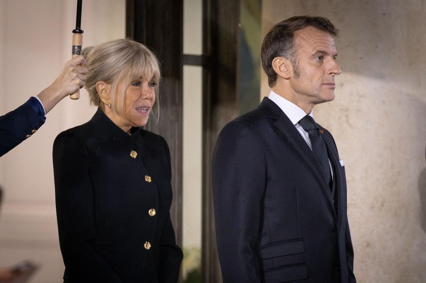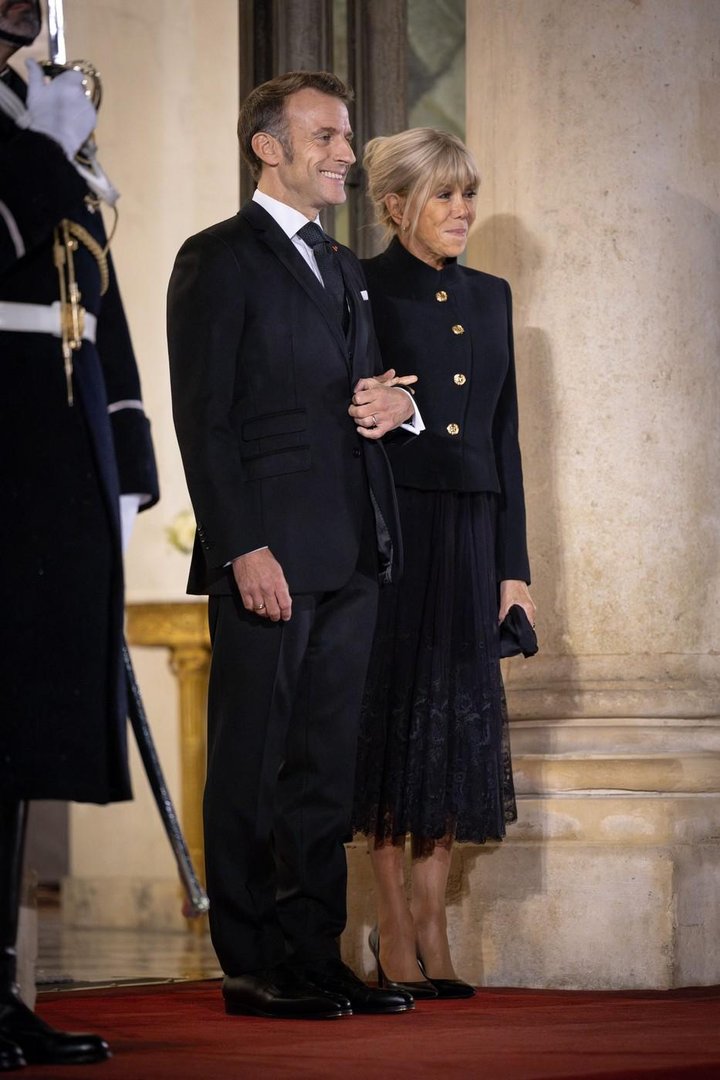 Francoska prva dama se je na stopnišču Elizejske palače znova pojavila v brezhibni modni opravi, ki je bila hkrati prefinjena in sodobna. Za to priložnost je izbrala monokromatsko črno kombinacijo modne hiše Louis Vuitton.