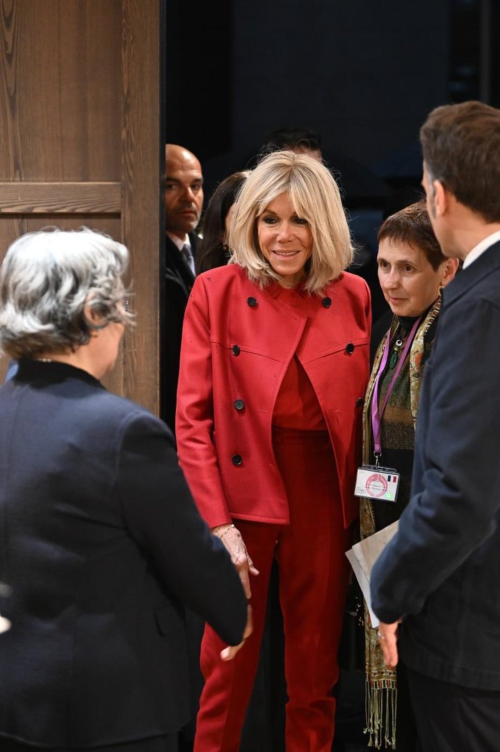 Rdeča kombinacija Brigitte Macron je še bolj izstopala zaradi drzne obutve.