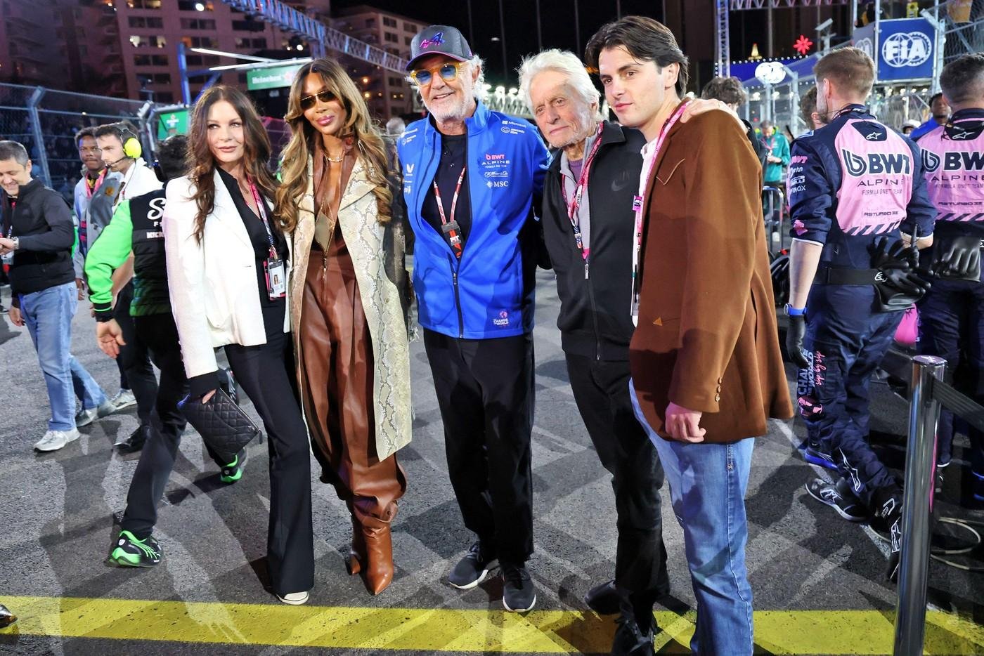 Spektakel Formule 1 v Las Vegasu je privabil številne zvezdnike, med katerimi je izstopala Catherine Zeta-Jones. Na dogodek je prispela v družbi moža Michaela Douglasa in sina Dylana. Obiskali so startno-ciljno ravnino, se družili z drugimi VIP-gosti ter pozirali ob boku Naomi Campbell in Flavija Briatoreja.