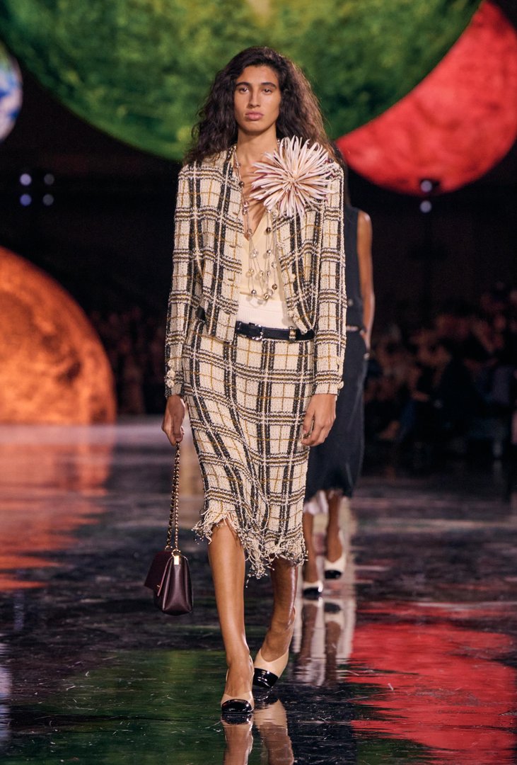 Univerzalni jezik Chanel potuje po svetu in v prihodnost ter se vedno širi. Moške linije z začetka kolekcije se ponovno pojavijo, mehkejše in zaobljene, tukaj prevzete iz bluzona. Množina tvidov in tkanj, strokovno raziskana in uresničena, se premika naprej; materialni eksperiment je prisoten tako zunaj kot znotraj, z individualnimi in kontrastnimi svilenimi podlogami z vzorci. Ideja prihodnosti iz preteklosti se kaže v temeljih Chanela: mreže tvida postanejo ročno vozlane pletenine in prosojnosti, arhitektura Chanelovega kostima je razkrita; nakit, tako bistven za Chanel, je obilen in dragocen, hkrati resničen in minljiv, z baročnimi biseri, steklenimi planeti in emajliranimi verigami; obutev ima znani kontrastni zaobljen prstni del, s petami, ki so povsem izvedljive, da nosilko potisnejo naprej, varno v prihodnost. Predvsem pa obstaja ideja svobode, nove univerzalne obleke in brezmejnega prepletanja slogov; dediščina ne le ene Chanel ženske, temveč Chanel žensk.