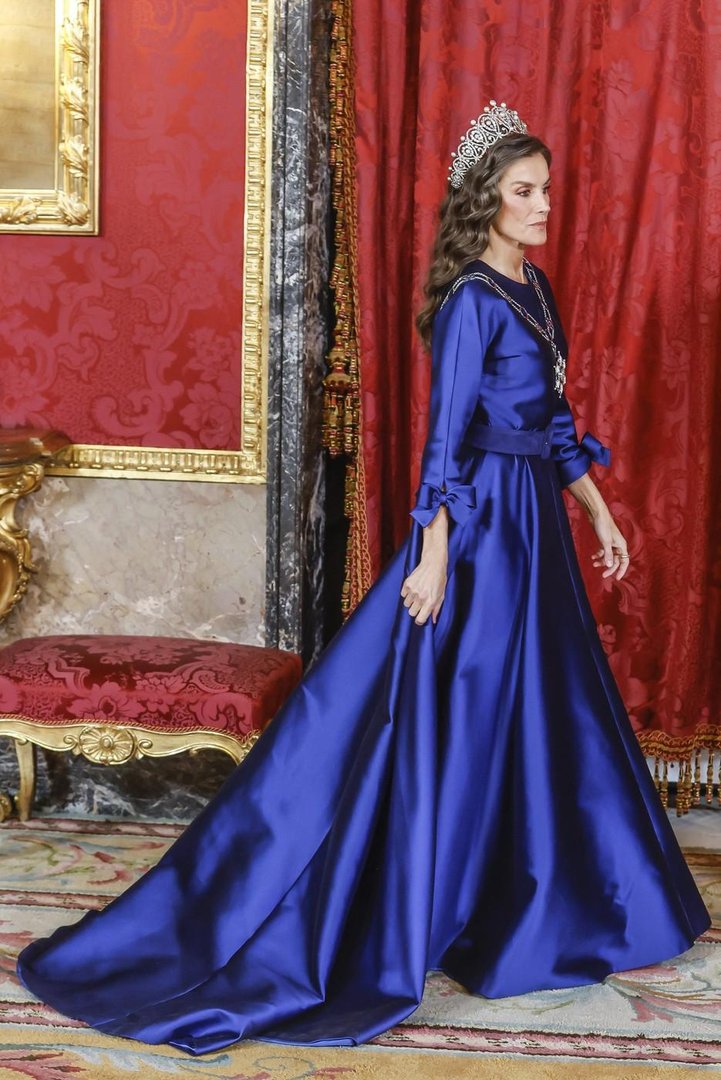 Za to posebno priložnost je kraljica Letizia izbrala razkošno večerno obleko priznane modne hiše The 2nd Skin Co., ki jo je prvič nosila že aprila 2024 med obiskom Nizozemske.