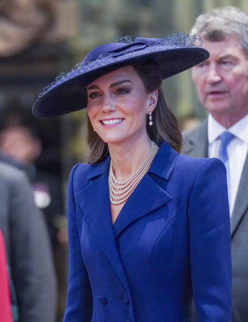 Posebno pozornost je znova pritegnila princesa Catherine, ki je zasijala v elegantni modri obleki modne oblikovalke Catherine Walker, ene izmed svojih najljubših modnih hiš. Stajling je dopolnila s sofisticiranim klobukom oblikovalca Seana Barretta, ki ga je nosila že leta 2023.