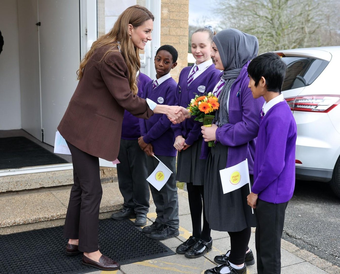Princesa Catherine je obiskala Akademijo Castle Hill v New Addingtonu v Londonu ob Tednu duševnega zdravja otrok. Za to priložnost je izbrala športno-eleganten videz, pri katerem je v ospredje postavila predvsem udobje.
