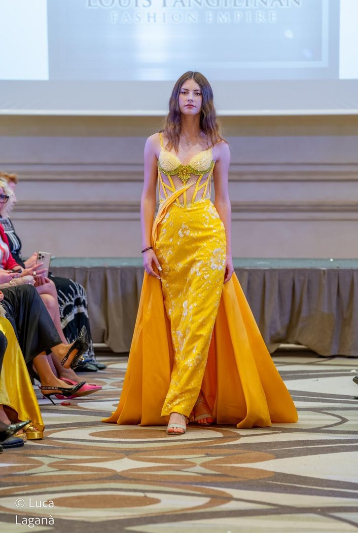 The runway featured a diverse lineup, including Italian couture icon Anton Giulio Grande, alongside Fjolla Haxhismajli, Brigitte Pastrama with her Heavenly Glow collection, Louis Pangilinan, Korn Taylor, and Addy van den Krommenacker. For younger audiences, Trendy by Sandra Ruffarelli added a playful dimension to the evening.