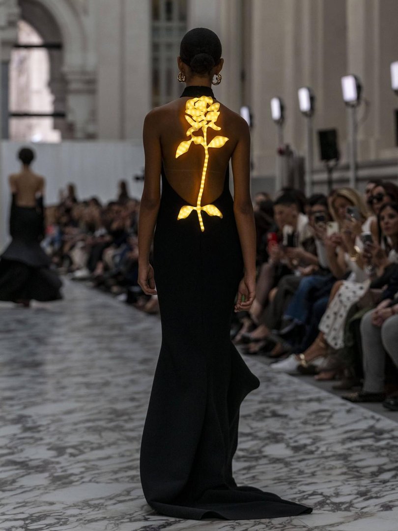 Največ pozornosti pa so pritegnile tehnološke inovacije. Oblikovalka in njena hči sta v kolekcijo vključili modele z vgrajeno osvetlitvijo, kar predstavlja drzno nadgradnjo večerne mode. Med najbolj izstopajočimi kosi je bila večerna obleka z velikim žarečim cvetom na hrbtu, ki je dobesedno osvetlil modno pisto in požel navdušenje občinstva.