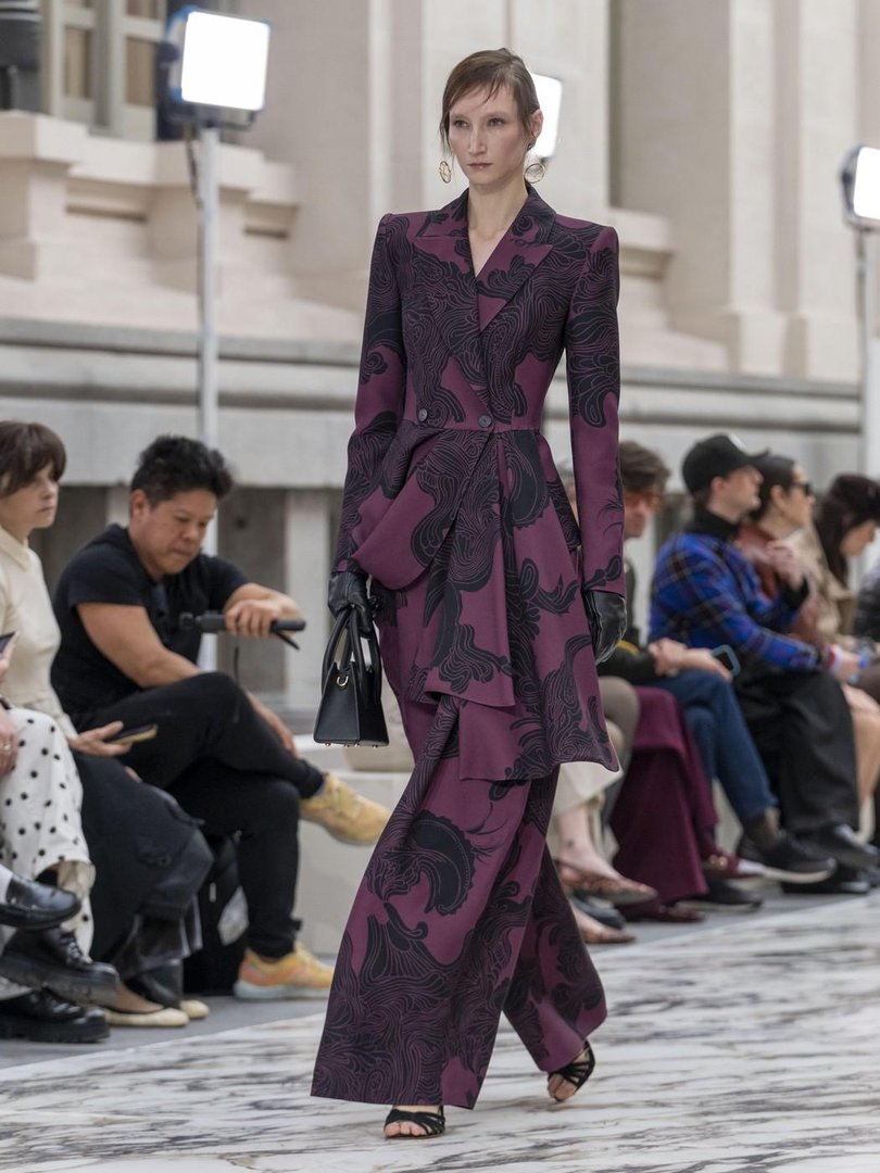 Kolekcijo zaznamujejo izraziti volumni ter premišljeno plastenje suknjičev čez lahkotne, skoraj eterične obleke. Silhuete so skulpturalne, a hkrati nosljive, kar ustvarja zanimiv kontrast med dramatičnostjo in eleganco. Posebno noto dodajo ročno poslikani detajli in kovinski elementi, ki poudarjajo prefinjeno izdelavo vsakega kosa.